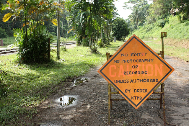 Recently, I met up with notabilia and Singapore Noodle to explore the Bukit Timah Railway Station. Not quite knowing where it was, I left my house extra early and arrived about an hour later by bus. I walked up a dirt and gravel road next to a black trestle bridge that crosses Bukit Timah Road, right near the King Albert Park bus stop. At the top of the road, I was greeted by this sign: