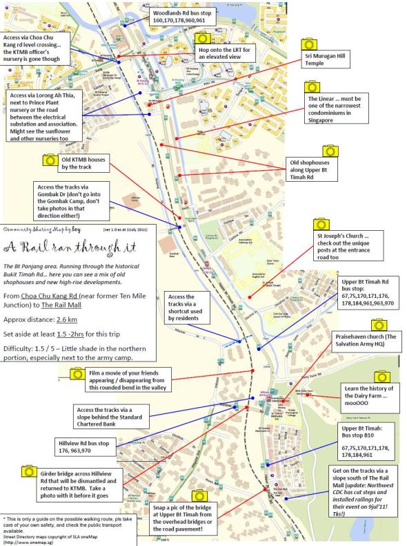 Here’s a map of A Rail Ran Through It – Walking route from Choa Chu Kang Road to Rail Mall, which includes good photo-taking spots. Thanks to the great effort from CY Leong!